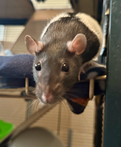 Hi! I’m Happy, and I love play time. I’m affectionate, full of energy, and always on the move — running, jumping, and exploring every nook and cranny. If it looks climbable, jumpable, or zoom-worthy, I’m already on it. Think parkour… but rat-style! I bring big joy to everyone wherever I go, and I’m always excited to see what fun comes next.
